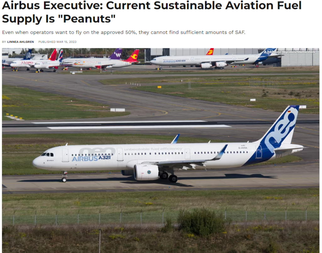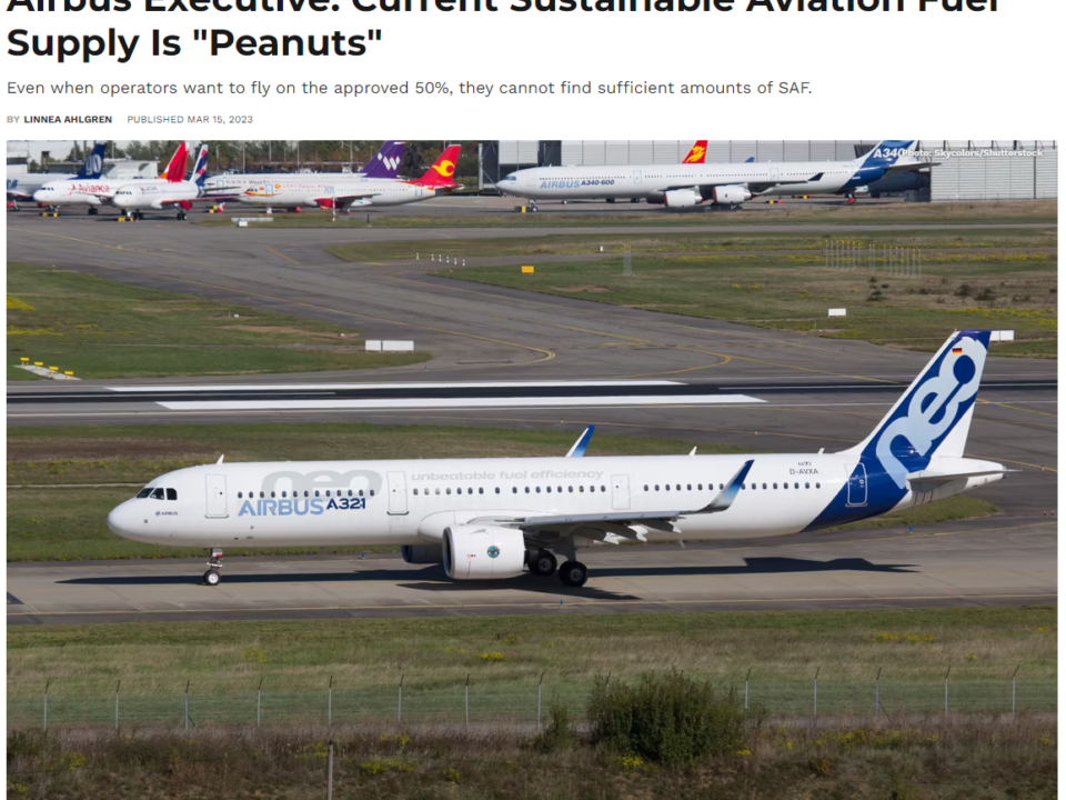 Airbus Executive: Current Sustainable Aviation Fuel Supply Is “Peanuts” Even when operators want to fly on the approved 50%, they cannot find sufficient amounts of SAF. […]